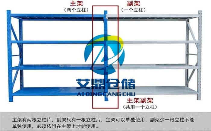 3、层板有木板和钢板可供选择,立柱高度设有每50mm调节孔距,可根据货物高低调节层间使用。